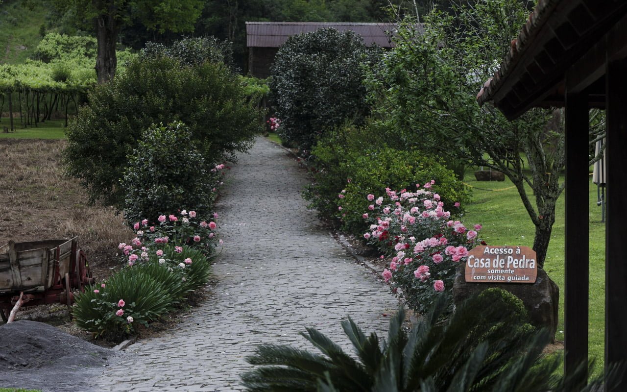 Idealizado pelo Eng. Tarcísio Vasco Michelon e pelo Arq. Júlio Posenato o roteiro Caminhos de Pedra visa resgatar, preservar e dinamizar a cultura que os imigrantes italianos trouxeram à serra gaúcha a partir de 1875. O Roteiro passou a ser concebido por meio da realização de um levantamento do acervo arquitetônico de todo o interior do município de Bento Gonçalves, ocorrido no ano de 1987. Constatou-se então que a Linha Palmeiro e parte da Linha Pedro Salgado, área abrangida basicamente pelo Distrito de São Pedro, composto por 7 comunidades, (São Pedro, São Miguel, Barracão, São José da Busa, Cruzeiro, Santo Antônio e Santo Antoninho) possuía o maior acervo de casas antigas, conservava sua cultura e história, tinha acesso fácil e, consequentemente, um grande potencial turístico, apesar da decadência e abandono por que vinha passando desde a década de 1970 com a mudança de traçado da rodovia que ligava Porto Alegre ao norte do estado.
